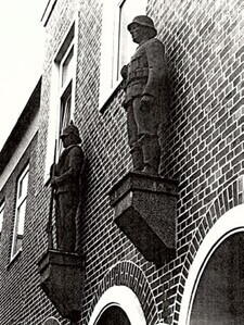 In den Jahren 1940 bis 1994 standen die vier Soldatenfiguren auf Wandsockeln über den Eingängen der Nebengebäude des Wirtschaftsgebäudes in der Hanseaten-Kaserne in Itzehoe. 1992 wurde die Kaserne aufgegeben und unsere vier steinernen Kameraden begleiteten das Sanitätsbataillon 6 nach einer Restaurierung 1994 in die Freiherr-von-Fritsch-Kaserne in Itzehoe. Mit dem aus dem SanBtl 6 hervorgegangenem Lazarettregiment 11 gelangten die vier Soldaten nach Breitenburg/Nordoe und mit dessen Verlegung in die Stapelholmer Kaserne nach Seeth. Durch die Aufgabe der Stapelholmer Kaserne Seeth 2015 beschloss das dortige Objektmanagement (das Heutige der Fliegerhorstkaserne), die vier gemeinsam mit den Spezialpionieren nach Husum zu bringen.