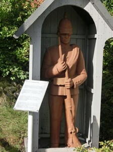 Im Zeitraum 1939/40 wurden die Steinplastiken „vier Soldatenfiguren“ vom Bildhauer Blohm aus Dägeling (Kreis Steinburg) modelliert und im Steinmetzbetrieb Kolbe in Itzehoe gegossen. Die steinernen Soldaten stellen vier Epochen der Militärgeschichte dar. Hauptaugenmerk wird hierbei auf die Entwicklung der Uniformen gelegt. Den Informationstafeln kann man entnehmen, um welche Uniform es sich handelt und welche Besonderheiten sie beinhalten.